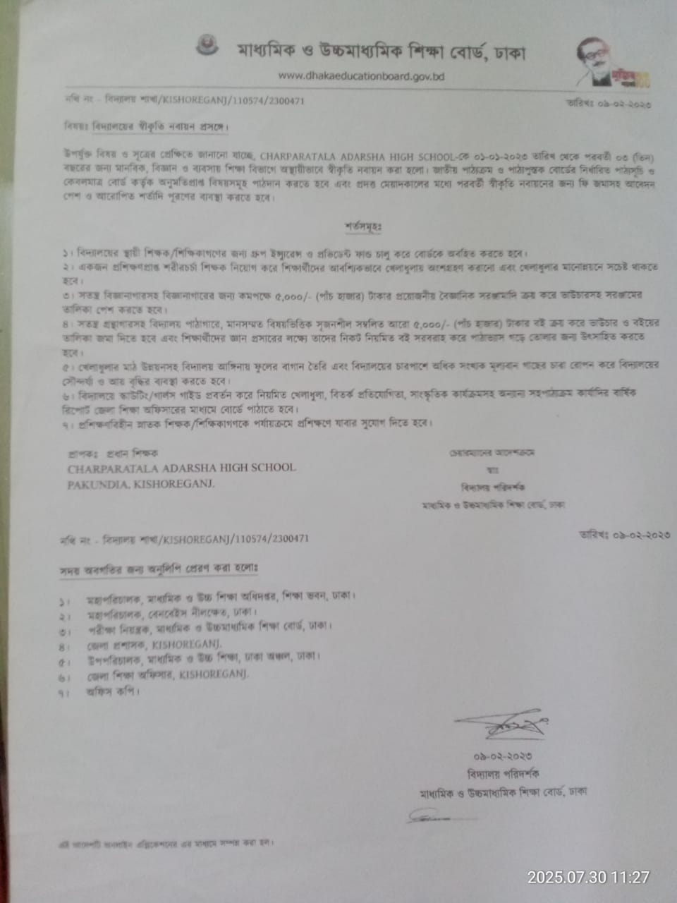স্বীকৃতি ও এমপিও